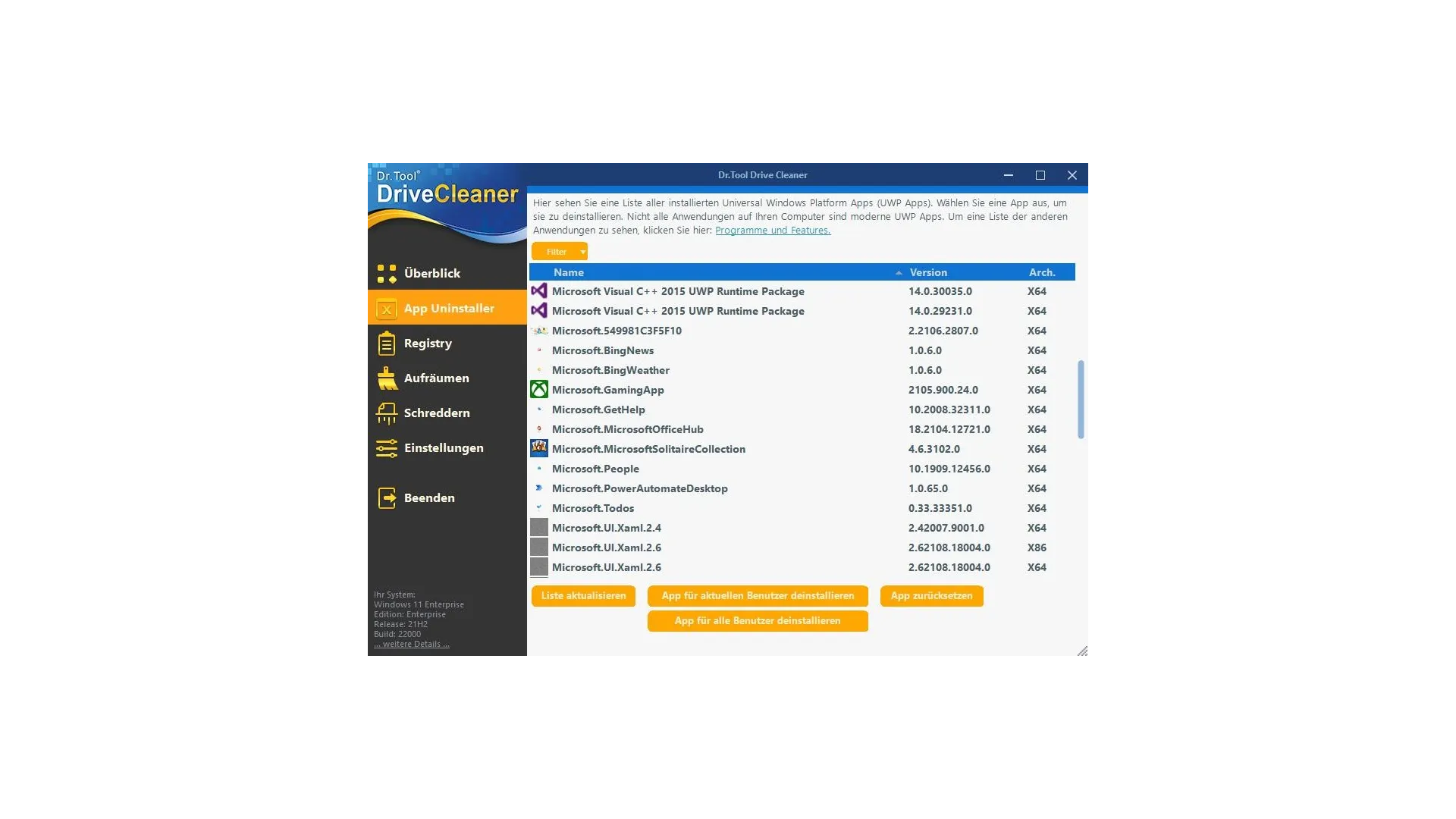 Drive Cleaner 23 hilft Ihnen, Speicherplatz freizusetzen, Ihren Windows-Alltag zu beschleunigen und Ihr System zuverlässig zu optimieren – einfach, sicher und effektiv.