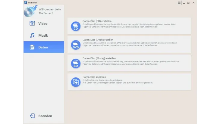 Sicher, effizient und kompatibel – Daten, Medien und Backups direkt auf CDs, DVDs, Blu-rays und ISO-Images übertragen.