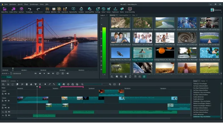 - Der Editor unterstützt eine breite Palette moderner Video-, Audio- und Bildformate und Codecs. Konvertieren und exportieren Sie Ihr Projekt mühelos in das gewünschte Ausgabeformat - optimiert für YouTube, Streaming oder Archivierung.