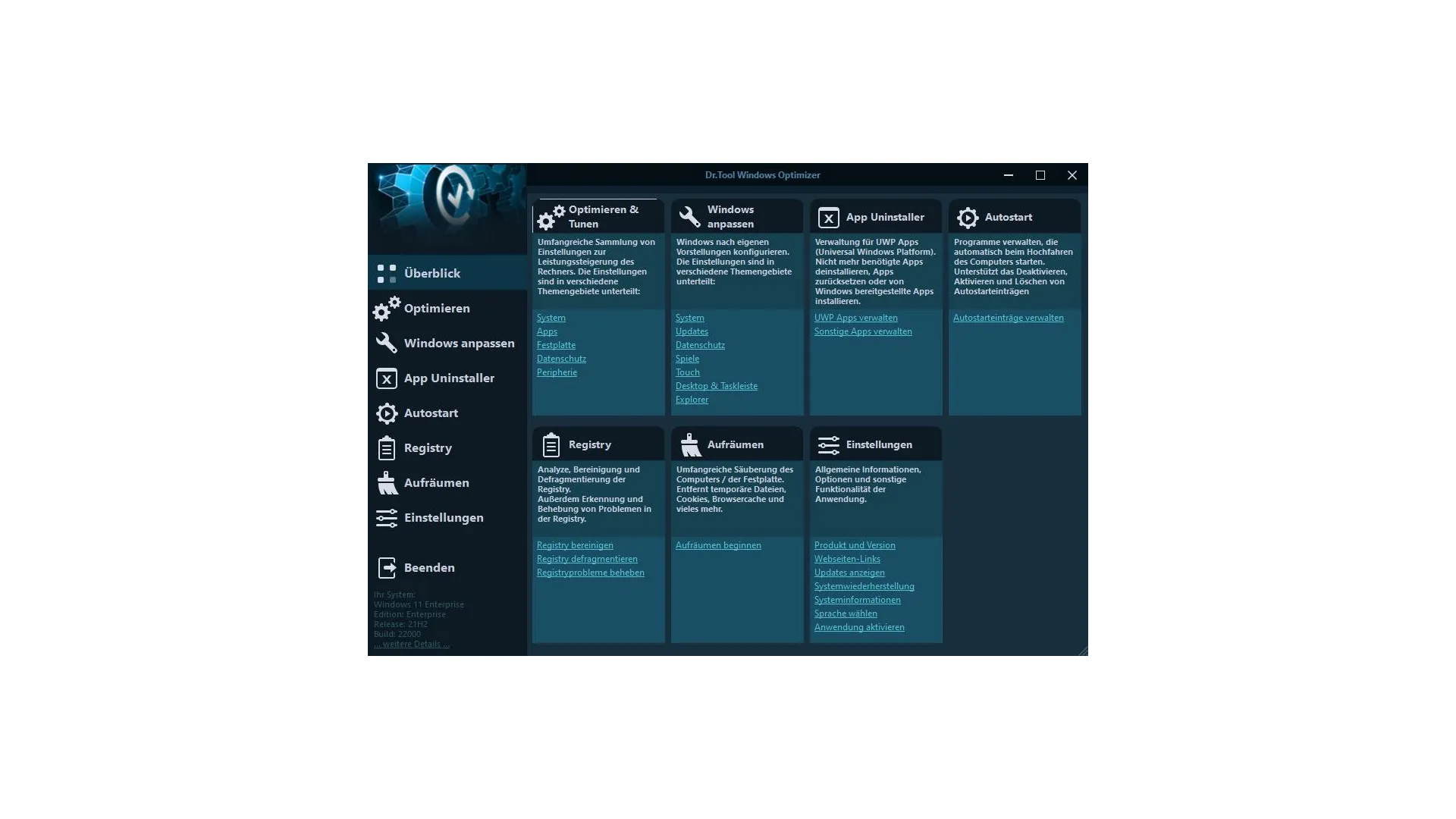 Umfangreiches Optimierungstool für Ihren PC: Betriebssysteme werden im Laufe der Zeit langsamer, fehlerhafter und sammeln Daten-Müll. Auch die Privatsphäre ist bedroht – Windows übermittelt oft mehr Daten, als Nutzern recht ist.